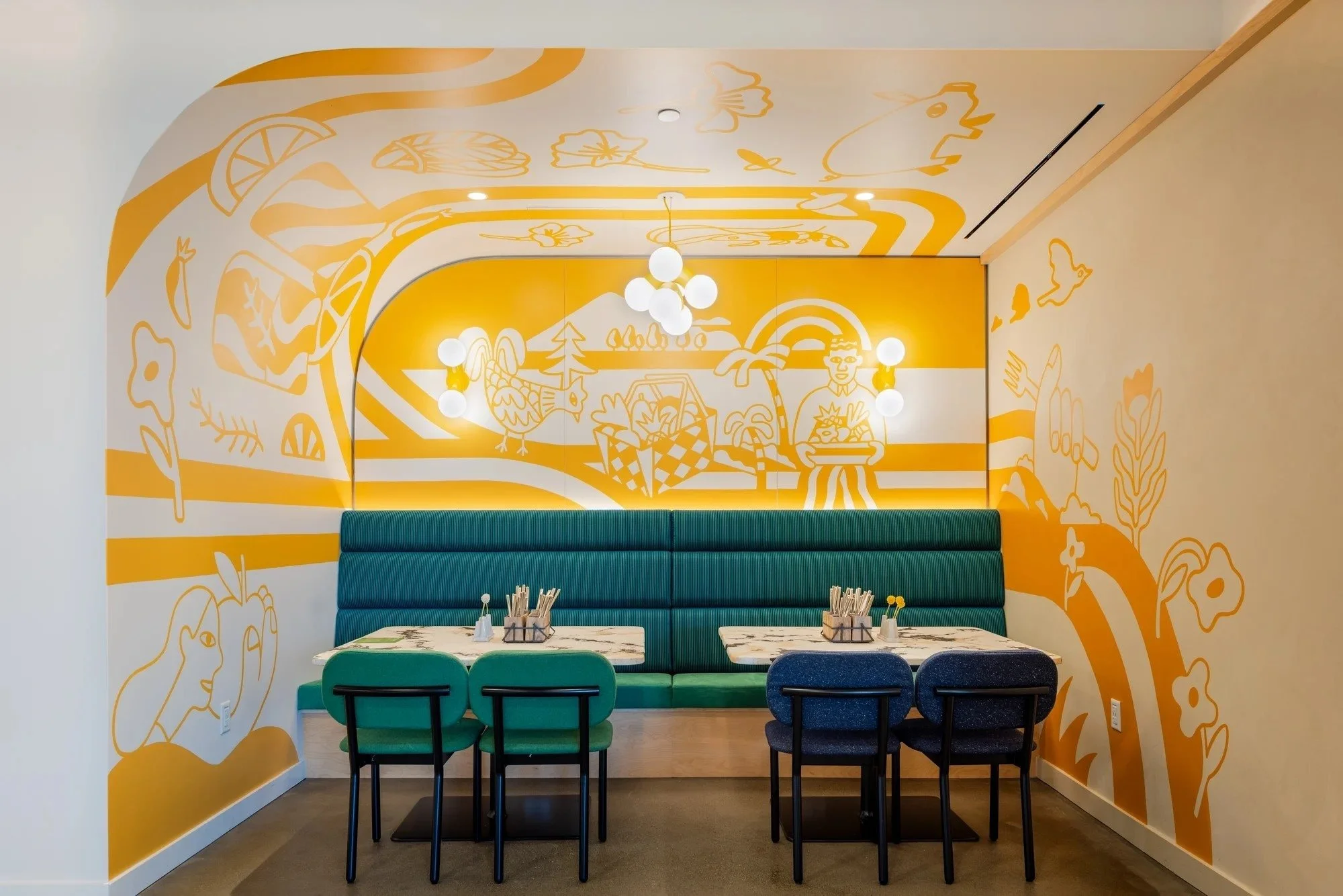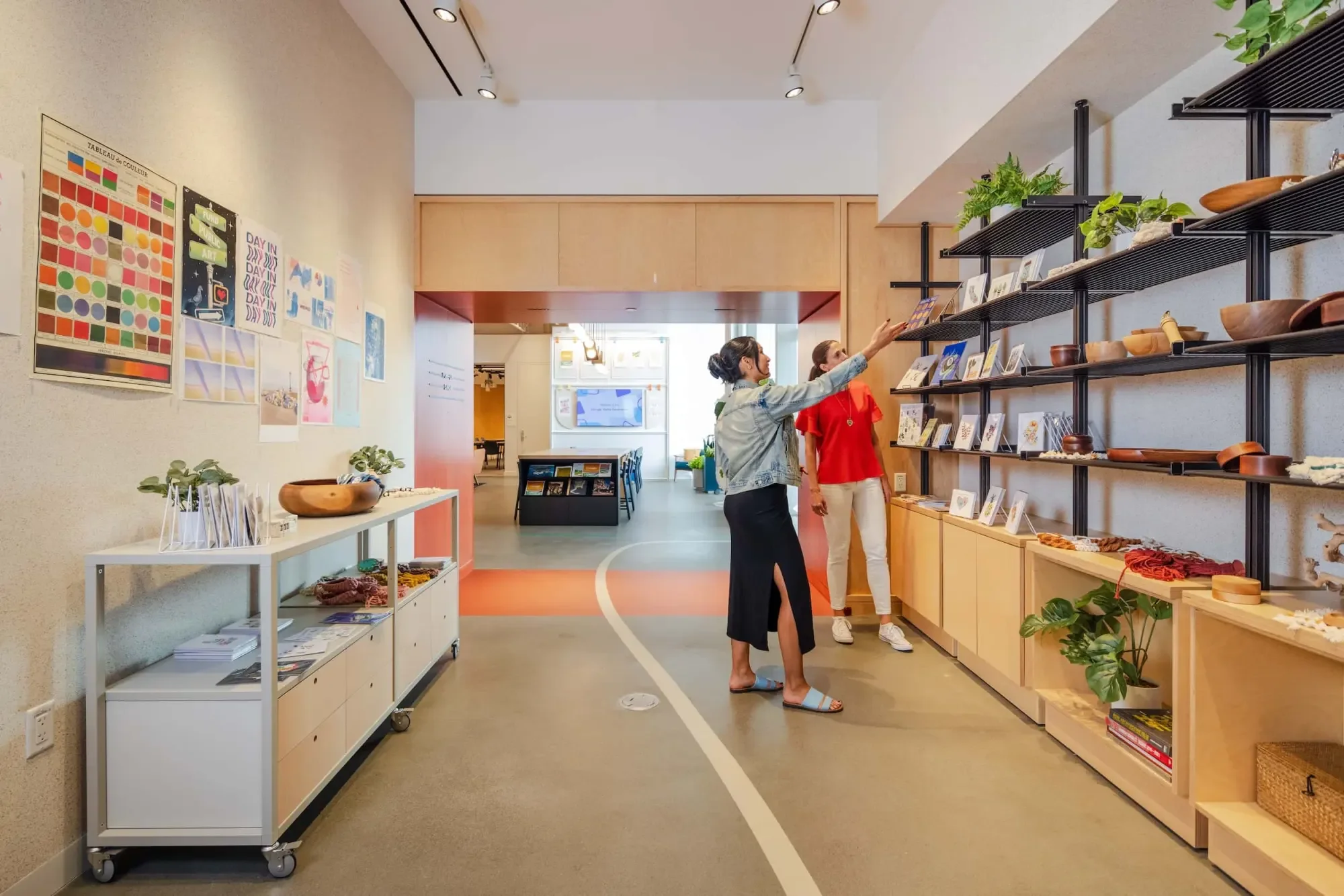 Playful design cues nod to the brand’s personality while materials, art, and programming reinforce the local community’s identity. Adjacent to the historic Googleplex, the café continues to draw diverse foot traffic — from global visitors to everyday passersby — making it a lively, accessible anchor for the campus.