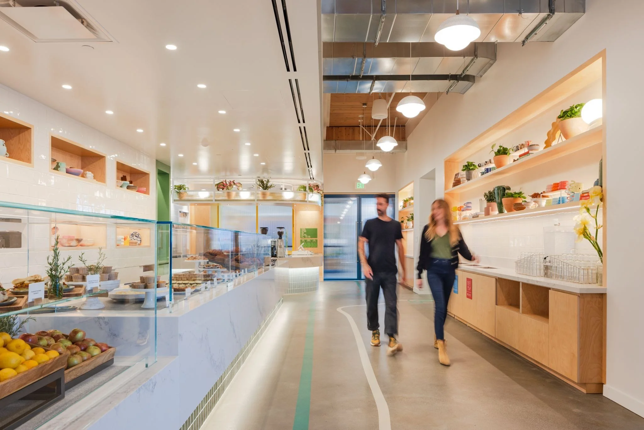 Completed for CBRE @ Google, this café occupies a key position: serving as a bridge between restricted employee zones and public spaces including retail and a community maker studio. Purposefully designed to transform the building into a gathering place, the space invites both visitors and locals to linger and connect.